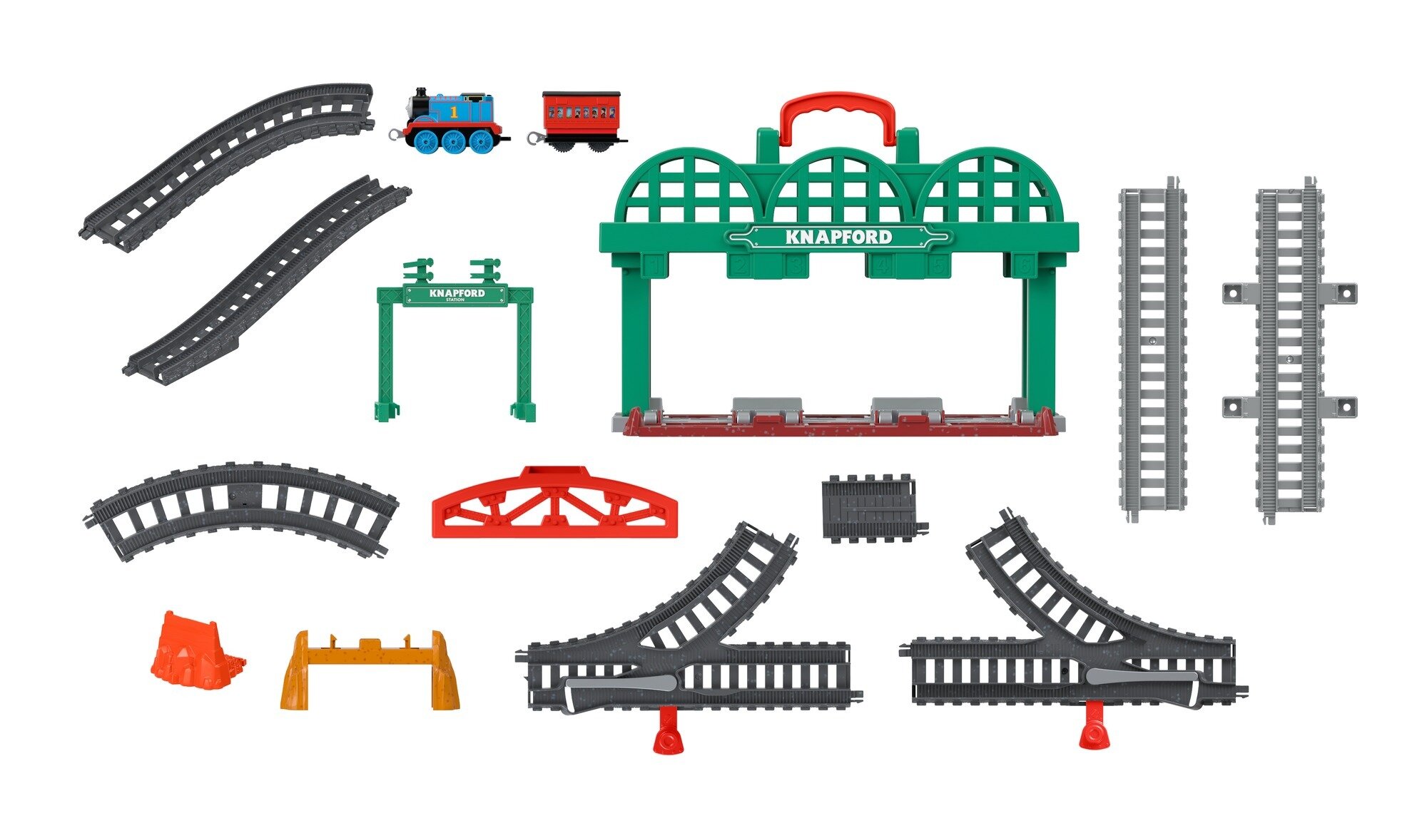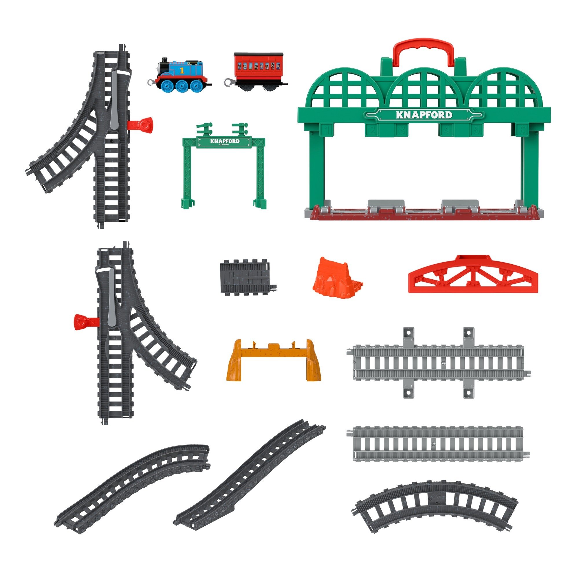 Bu tren setinde 23 ray parçası, Knapford İstasyonu, alt geçit ve bir köprü bulunur.