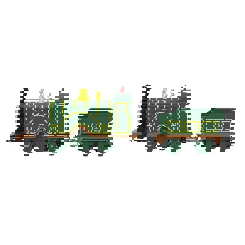 Çizgi filmdeki karaktere benzer şekilde tasarlanan 1 adet Thomas ve Arkadaşları lokomotifi diğer Thomas ve Arkadaşları pistleriyle uyumludur (Ahşap olanlar hariç).