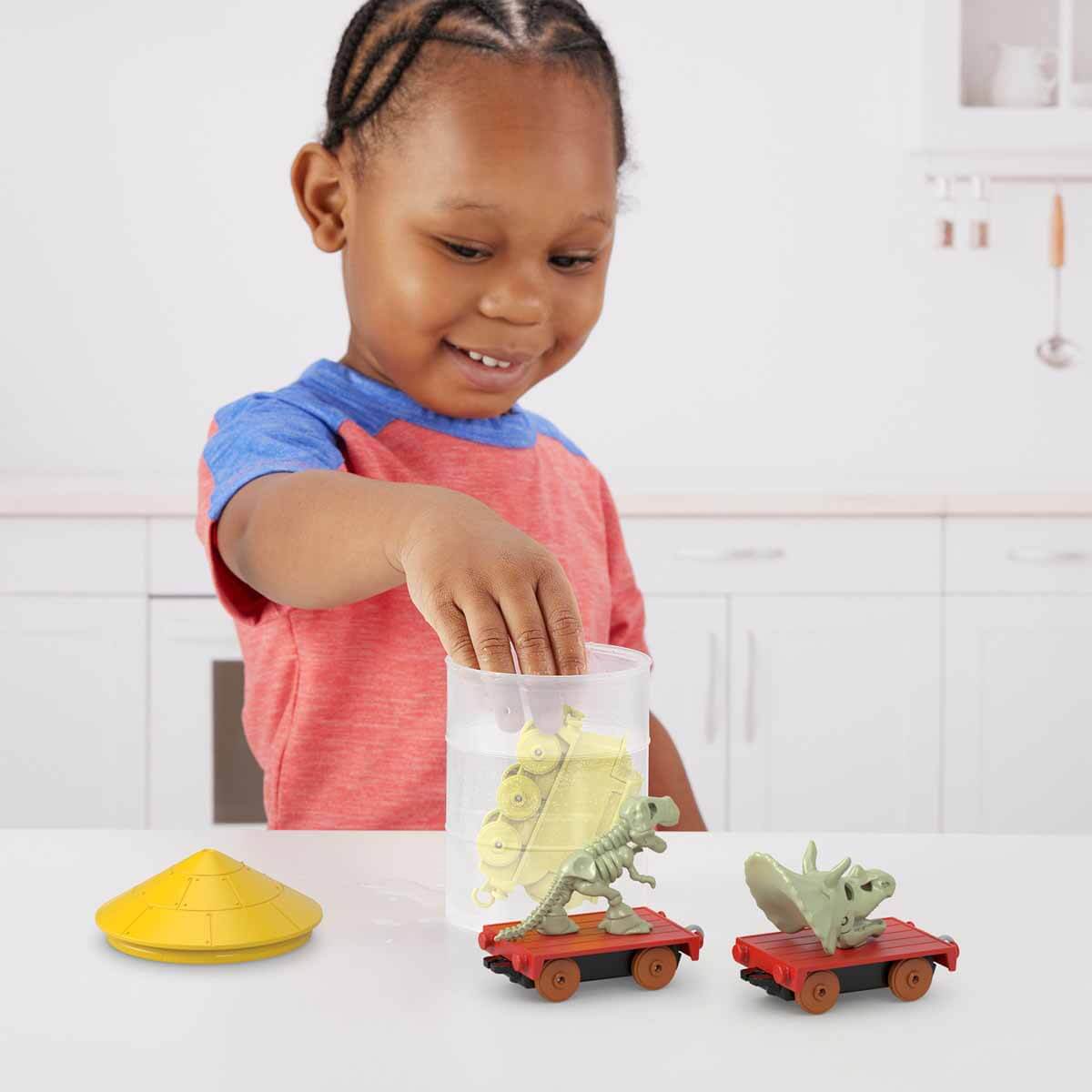 Çocuklar kargo parçalarını ve motoru birbirine bağlayıp onları bir tren olarak birleştirebilir. Kutu içerisinden çıkan aksesuarları trenin vagonlarına yükleyip onları taşıyabilir. Bu renk değiştiren küçük tren vagonlarını birbirine bağlayabilir ya da onları ayrı olarak kullanabilir. Thomas ve arkadaşlarıyla birlikte filmden en sevdikleri sahneleri yeniden canlandırabilir veya kendi hikayelerini oluşturabilir.