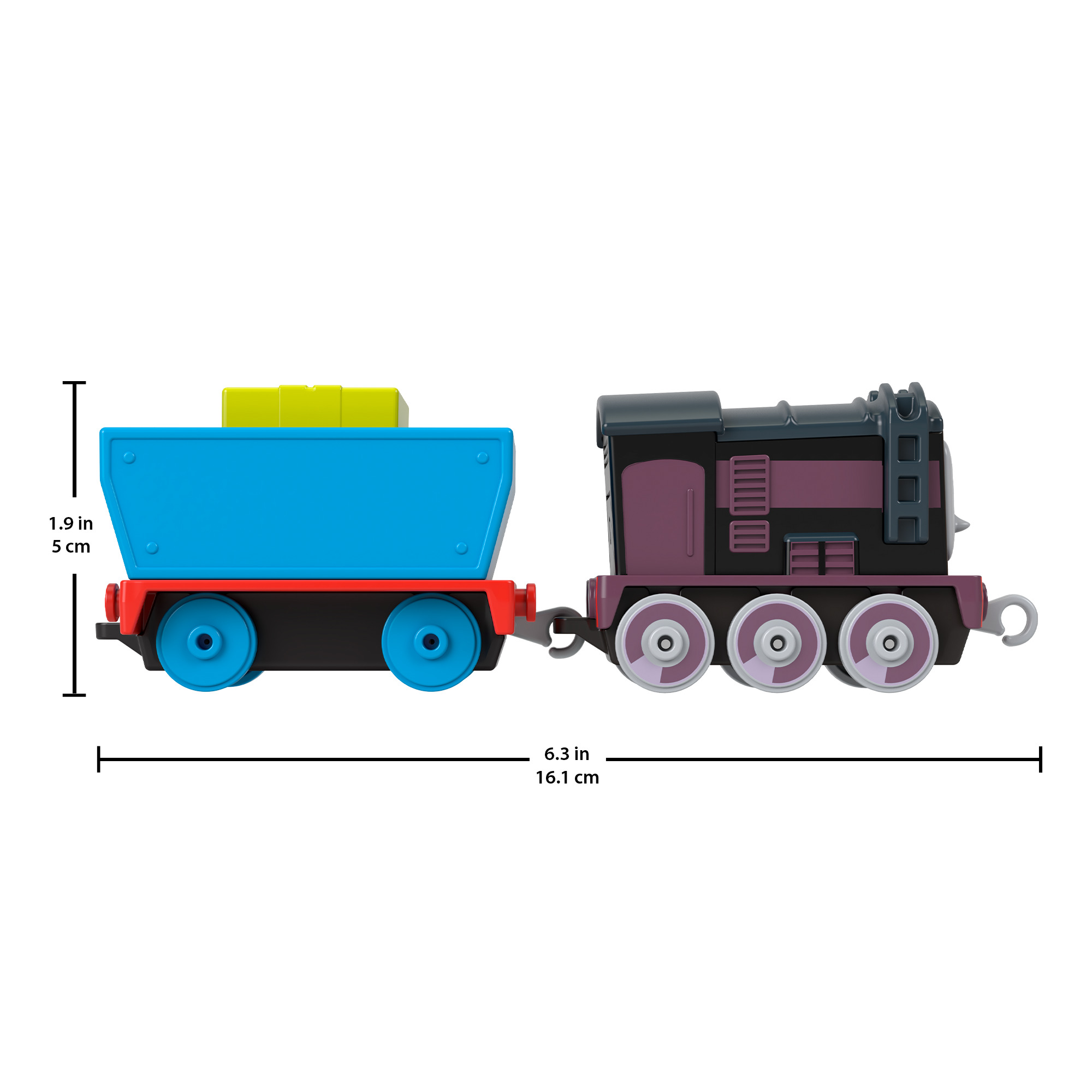 Thomas, Percy ve Diesel gibi popüler karakterleri içeren pist setlerine, eğlence dolu yarış ve kargo teslimatı oyunlarına hazır bir metal lokomotif dahildir.