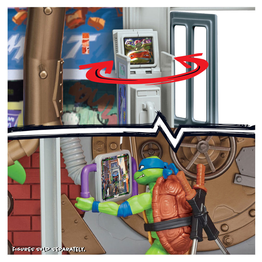 Başarılı Ninja Kaplumbağalar Mutant Mayhem filminde görüldüğü gibi, Sewer Lair oyun setinde Kaplumbağaları hazır ve aksiyona hazır tutmak için 20'den fazla farklı sallanma özelliği var!