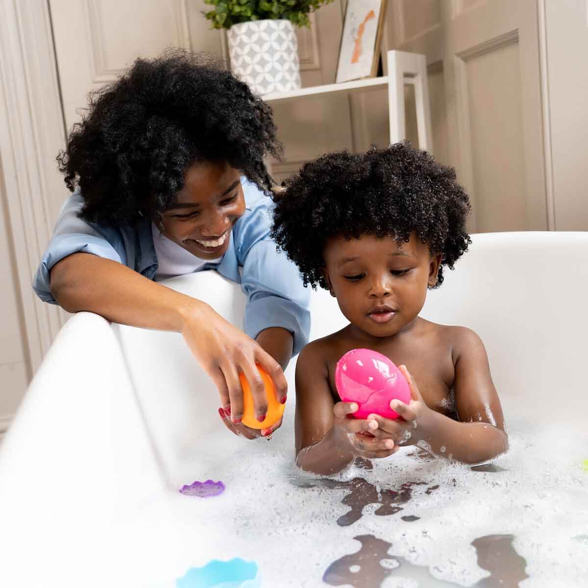 Üstelik saklambaçlı iç içe yumurtalar suda vakit geçirmeye bayılıyor! Sende saklambaçlı yumurtaları yanına al ve banyo keyfinin tadını çıkar!