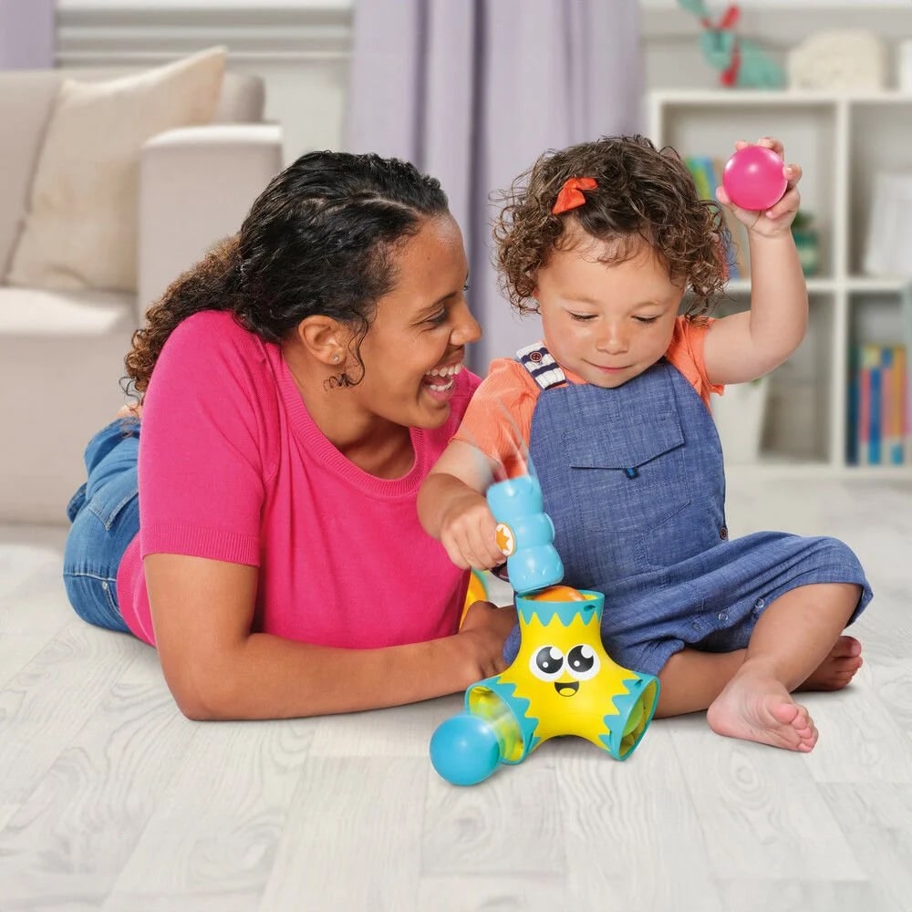 Tak Tak Fırlat Toplar, minikler için ince motor becerilerini güçlendiren, sebep-sonuç ilişkisini keşfettiren ve el-göz koordinasyonunu geliştiren eğlenceli bir deneyim sunar.