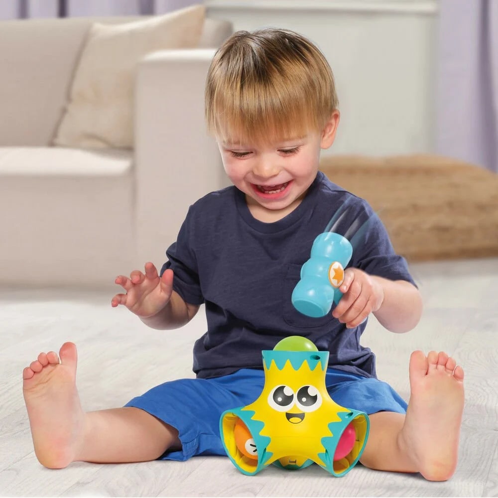 Toomies Tak Tak Fırlat Toplar, parlak renkleri, eğlenceli tasarımı ve minik yavrunuzun kıkırdayıp eğlenmesini sağlayacak basit bir bash-pop mekanizmasıyla eğlenceyi bir araya getiriyor!