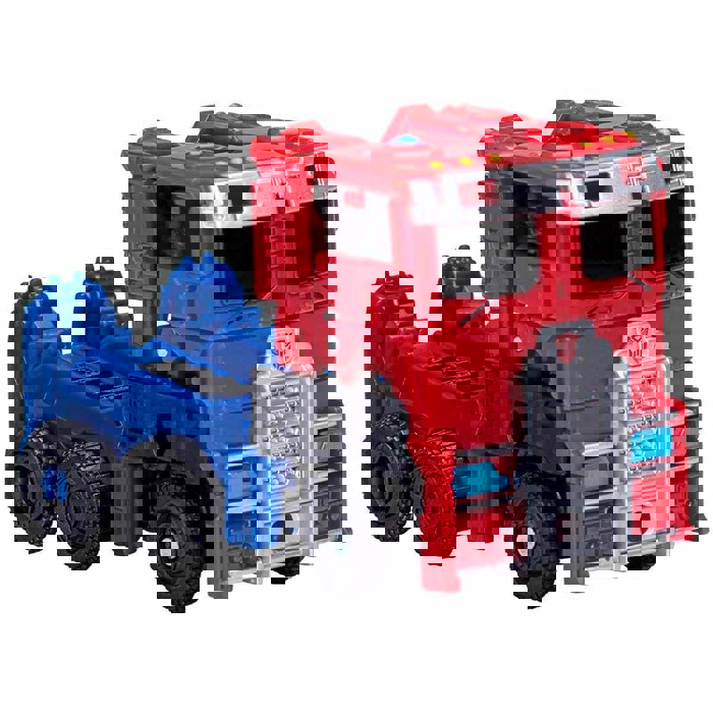 Asil Autobot savaşçısı Optimus Prime, yanında Autobot ve Maximal müttefikleriyle birlikte savaşa atılıyor.