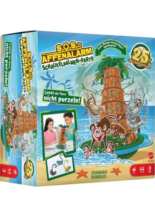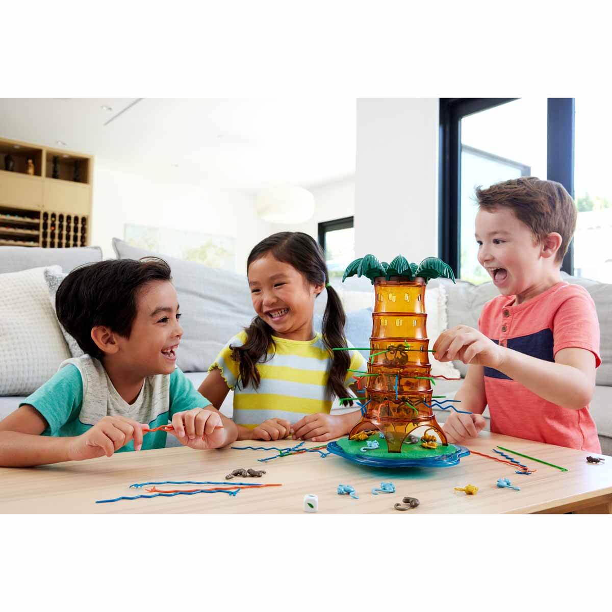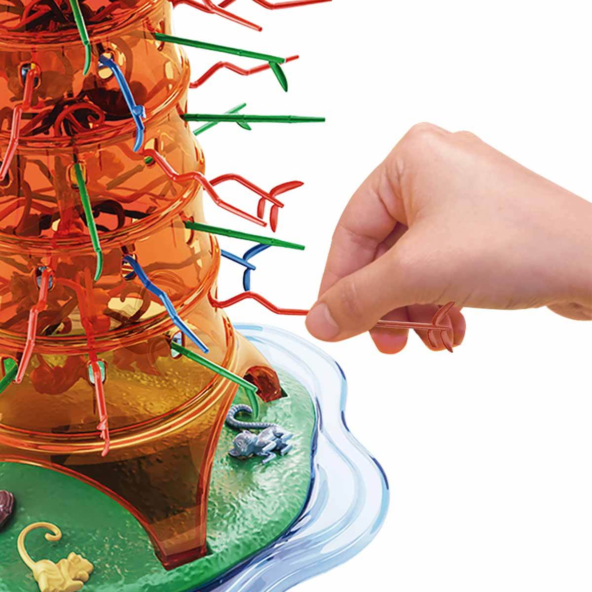 Tumblin' Monkeys Oyunu, okuma gerektirmediğinden küçük yaştaki çocuklar için idealdir. Oyun, parlak sarı renkte şeffaf bir plastik palmiye ağacıyla gelir. Bu sayede, hareketli maymunları plastik çubuklarla kıvrık kuyruklarından yakalamaya çalışırken tüm hareketlerinizi görebilirsiniz.