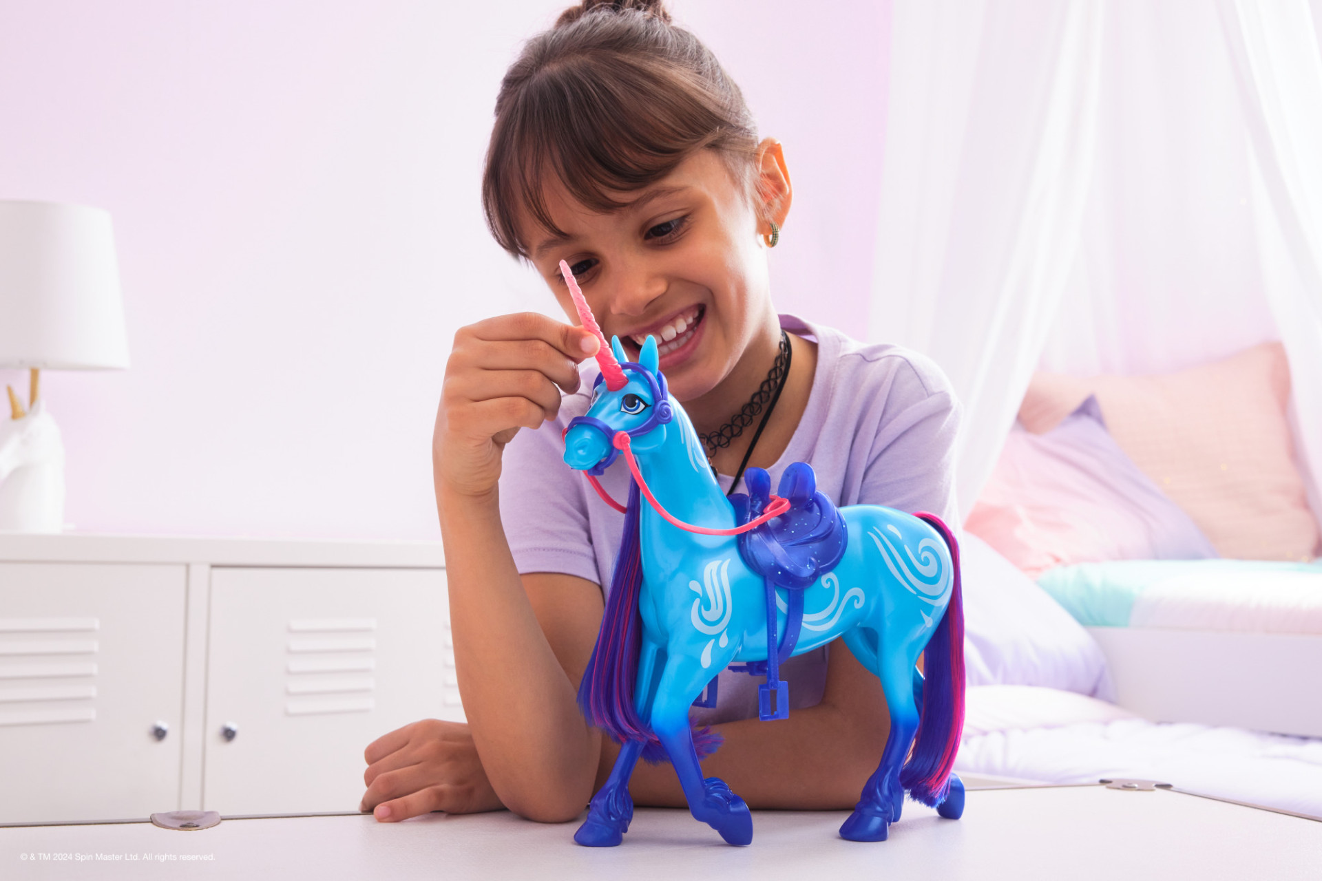 İçerik: 1 adet çıkarılabilir dizgin ve eyer ile yaklaşık 28 cm uzunluğunda tek boynuzlu at.
