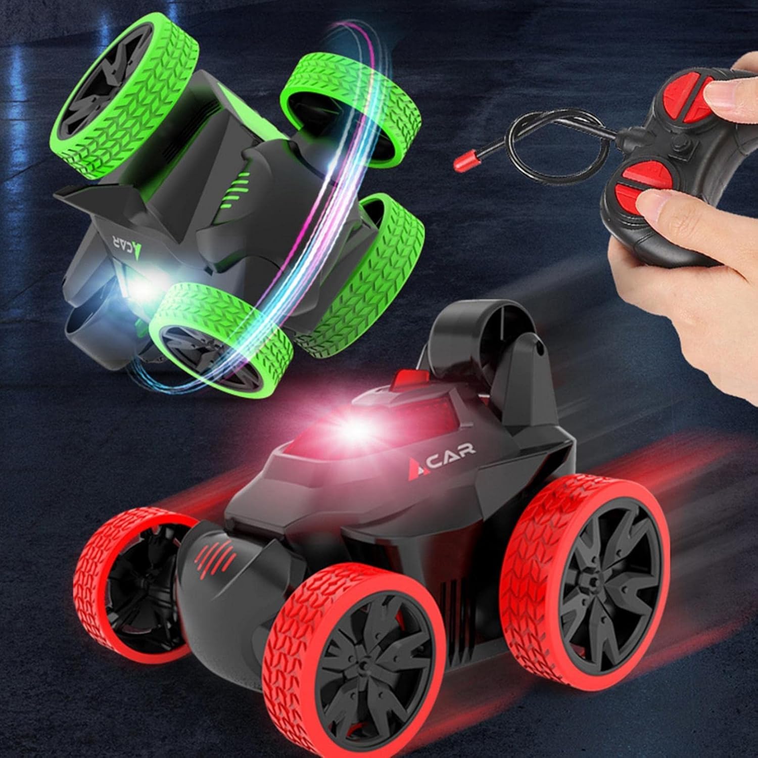 Bu uzaktan kumandalı araba yarışabilir, iki yana dönebilir, 360 derece takla atabilir ve bunu yaparken göz kamaştırıcı bir ışık gösterisinin tadını çıkarabilir.