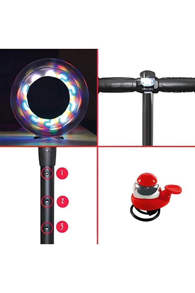 Bu eğlence, renkli ışıl ışıl bir eğlence! Scooter’ın ön ve arka tekerlekleri hareket ettikçe ışık saçıyor.