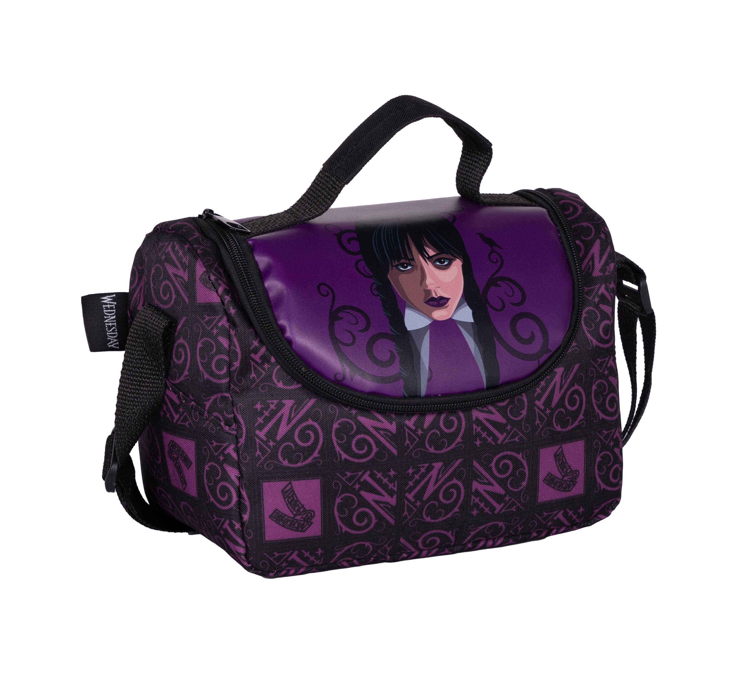 Wednesday temalı bu sevimli beslenme çantası, çocukların okulda ya da dışarıda keyifle kullanabileceği pratik ve şık bir üründür.