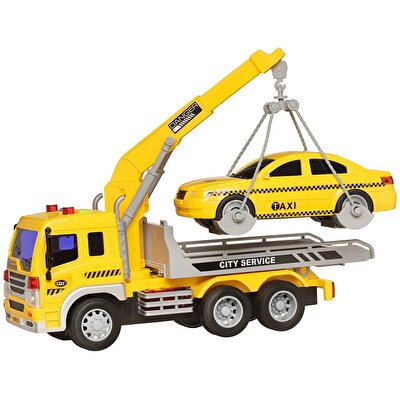 Çekici ses çıkarır (korna sinyali, motor çalıştırma, geri vites) ve arabanın tavanında yanıp sönen ışıklar yanar.