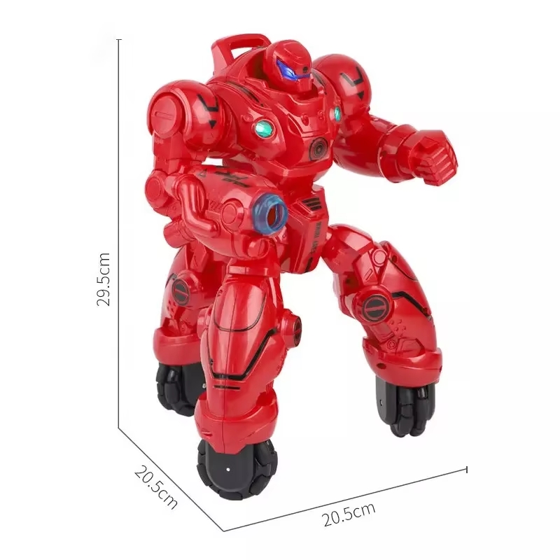Ayrıca, uzaktan kumanda üzerinde, tüm özelliklerini bir kerede görmek için demo düğmesine basılarak görülebilen bir demo düğmesi vardır. Işıklı ve sesli bu müzikli robot, robotların dünyasını seven çocuklar için çok uygun bir hediye. Robotun sağ koluna püskürtme fonksiyonlu bir silah yerleştirilmiştir.