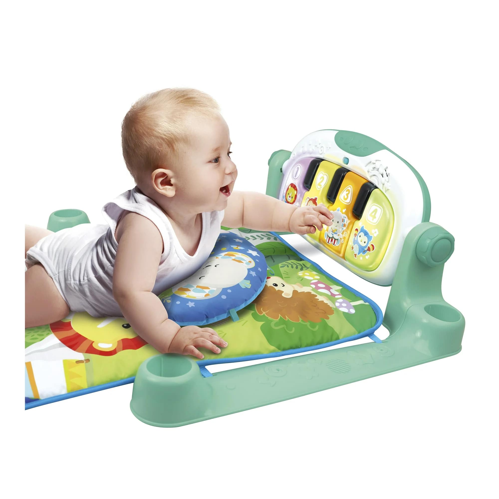 Keyifli seslerle merakı teşvik edin. Melodiler veya sakinleştirici ninnilerle karıştırın. Konfor ve gelişim için tasarlanan yumuşak, renkli oyun matı, Rahat bir alan sunarken, yeniden konumlandırılabilir oyuncak barı bebeğinizin değişen ihtiyaçlarına uyum sağlar.