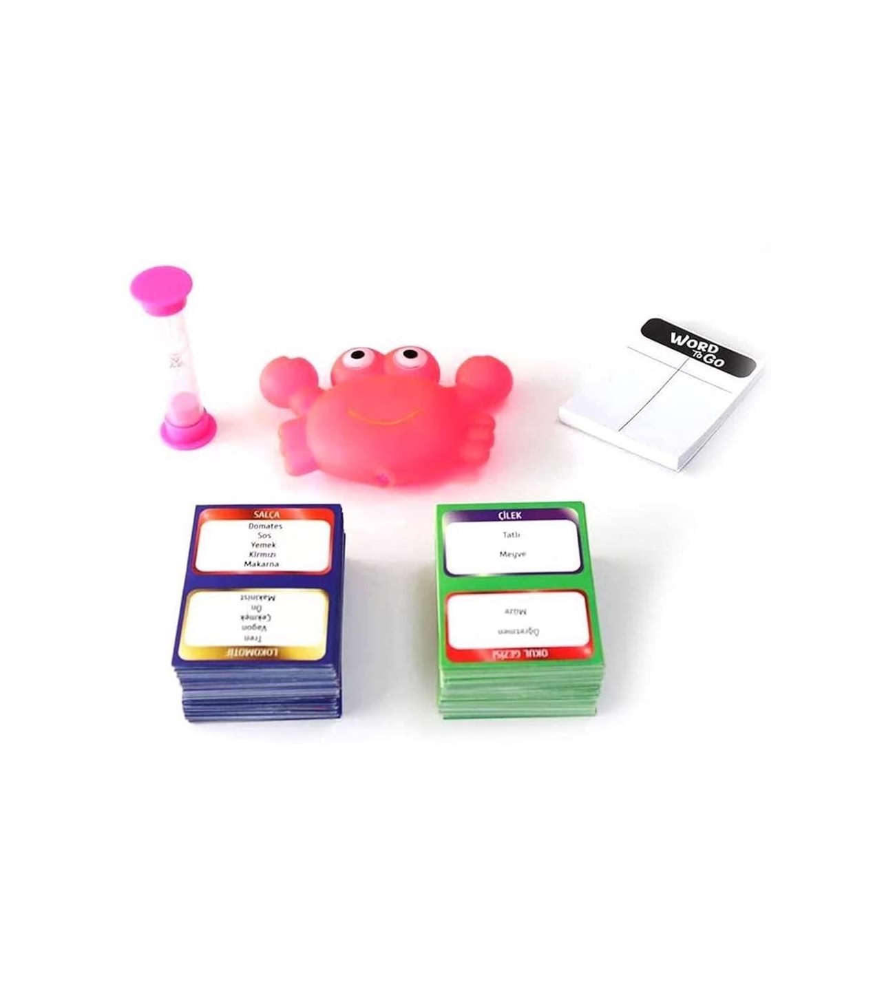 Kutu İçeriği: 130 adet çocuklar için kart, 130 adet anne-baba (yetişkinler) için kart, Oyun düdüğü, Kum saati, Puan defteri, Oyun kılavuzu,