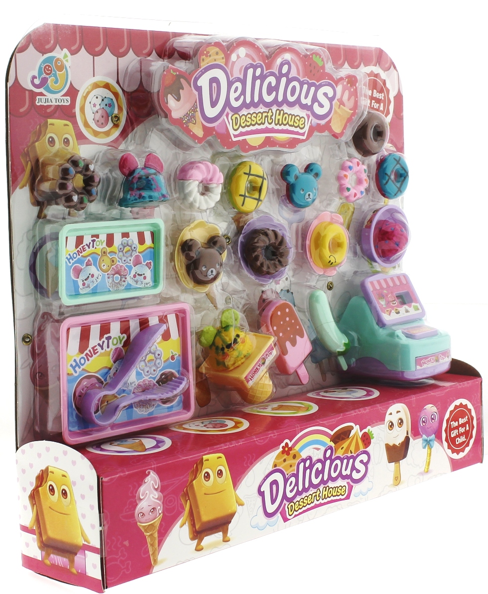 Set içerisinde 8 çeşit donut, 3 çeşit top dondurma, 2 stick dondurma, 2 tepsi, maşa, 3 servis tabağı, dondurma kasesi, külah ve çekmeceli yazar kasa bulunmaktadır.